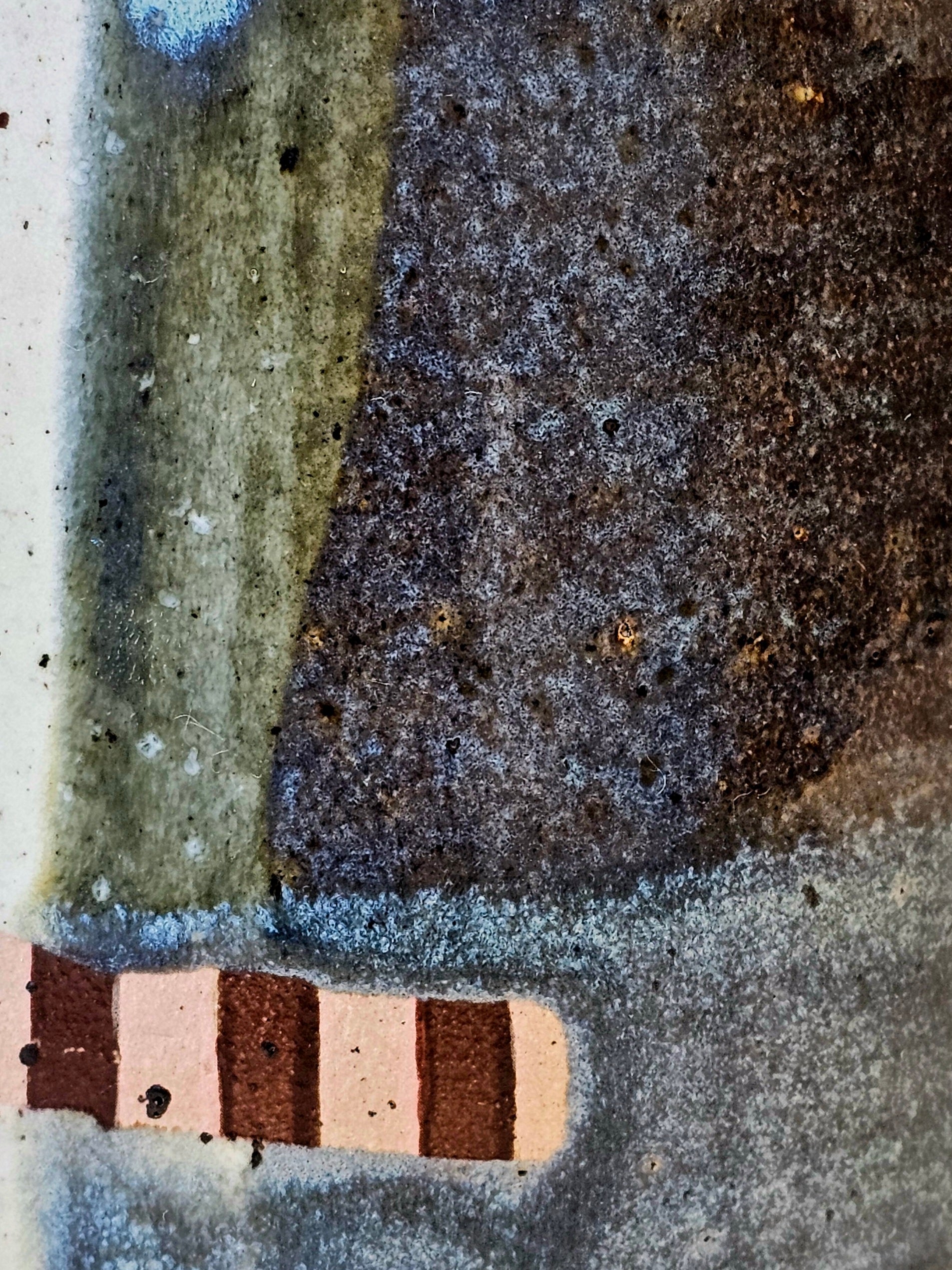 Handthrown vase. Lightly speckled stoneware. Lovingly decorated with a selection of high-fire glazes. 13cm tall